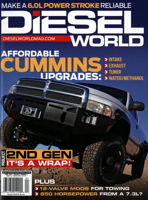 No surprise, then. that Gale Banks of Banks Power wanted to add more 12-valve options to the company’s extensive line of diesel power adders. “We had planned to do that for some time, but didn’t have access to an engine,” he admitted. After locating a semi-stock ’96 Dodge with the 12-valve, the Banks procedure was put in place: repeated testing and documentation so you can back up what you offer with solid documentation. The overall approach was fairly direct, but the specifics were far more involved, requiring several different combinations of components. Space doesn’t permit covering all the variations that were evaluated, so we’ll focus on simply the before/after results. Keep in mind that since this rig is used primarily for towing and hauling, the power upgrades were targeted for a work-truck configuration, not a dragster or double-throw-down hot rod. As part of the process, output at the rear wheels (measured on the Banks chassis dyno) was 160 hp at 2,400 rpm, and 380 lb/ft at 1,700 rpm. Note that the engine baseline number came from a pure stock 12-valve tested earlier by Banks. Our guinea pig is fitted with real-world mods that most 12-valve owners have done: #8 fuel plate, aftermarket intake along with an upgraded turbo and exhaust manifold. No changes to the fuel delivery system were done throughout the project.