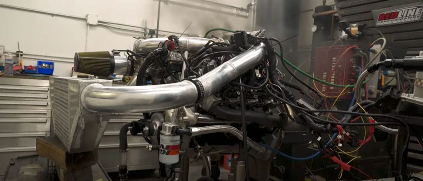 The engine being built by the Hoonigan team is a compound turbo engine which essentially means it has one turbo blowing into another. While there’s nothing wrong with such a setup, it appears as though the guys who strapped the engine to a rig and dyno-tested had no idea what they were on about.