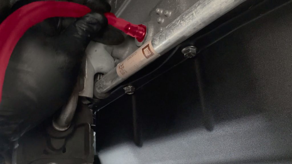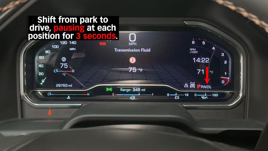 Once the fluid reaches 170°F, leave the engine running, shift the engine to Park, and raise the truck back up to check and verify the fluid level.