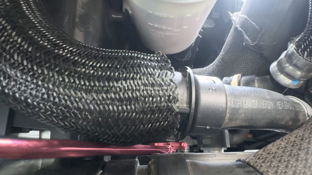 Slide on and fully seat the hump hose onto the charge air cooler inlet.