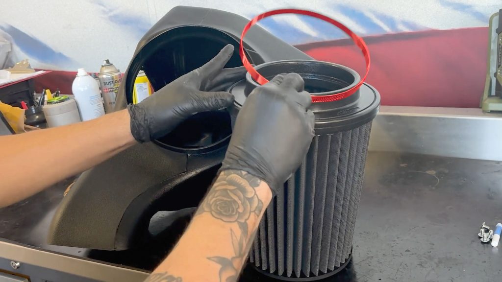 29. Tighten the clamp on the Banks Ram-Air Filter.