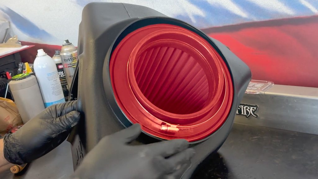 23. Slip the large hose clamp over the collar of the Ram-Air filter.