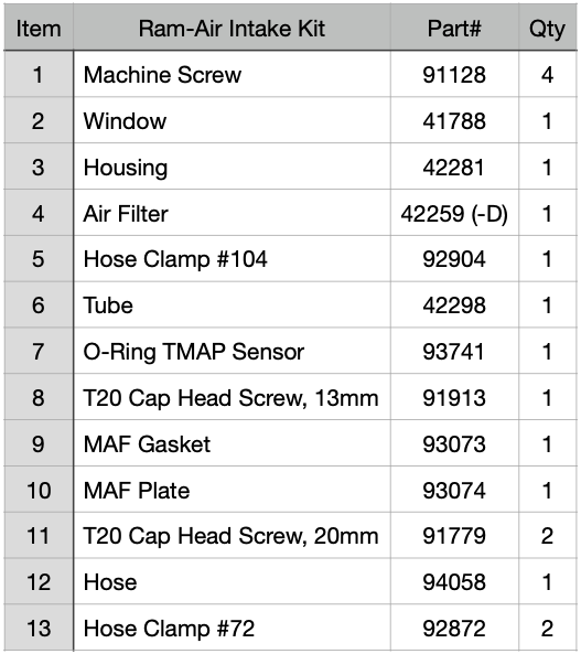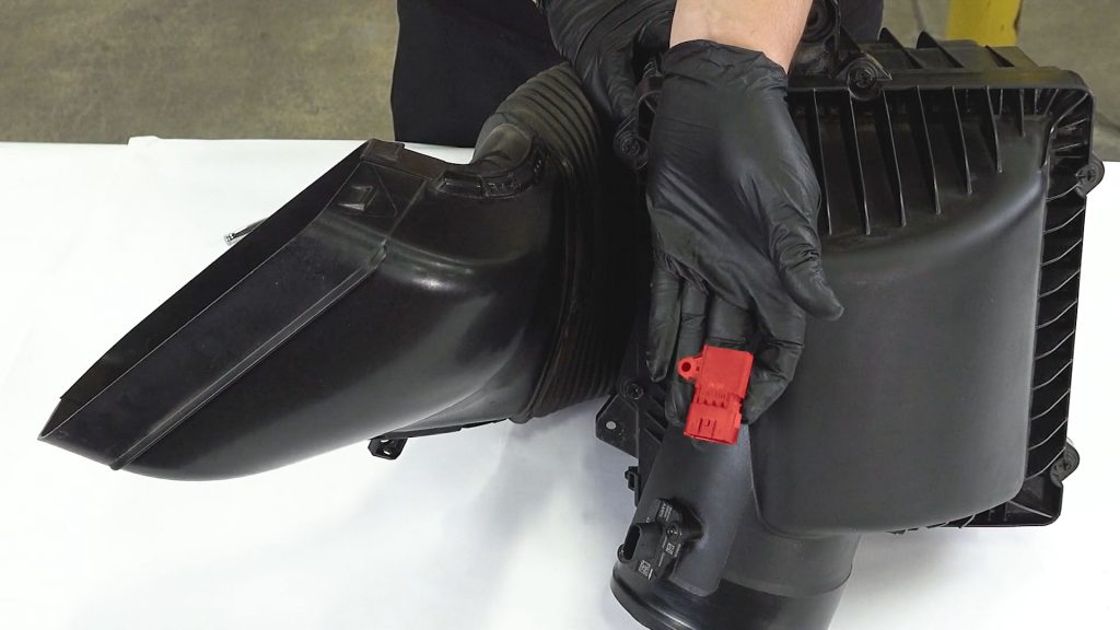 Use caution when working in the engine compartment. Make sure the engine has been OFF for several hours and cool. Some components from the stock air intake system will remain in service. Take care when removing stock air intake components to not damage them.
