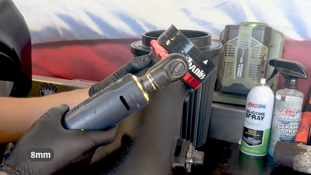 17. With an 8mm socket, tighten the hose with a hose clamp.