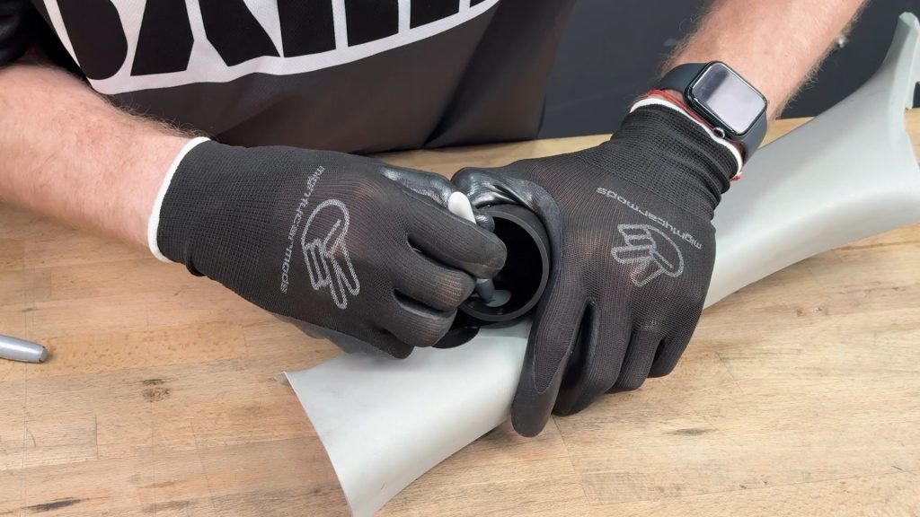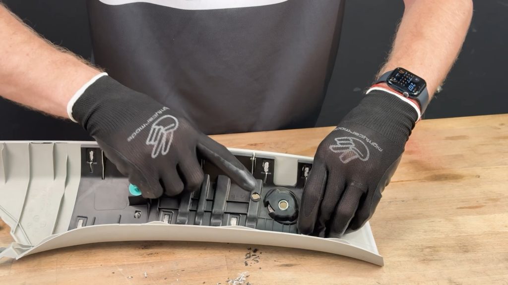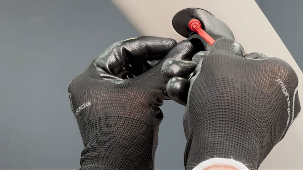 8. Place a dot with a marker in the center of the cable access hole inside the Stealth Pod. This will be where you will drill with the step bit.