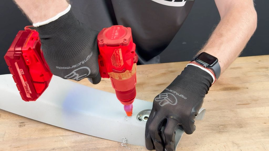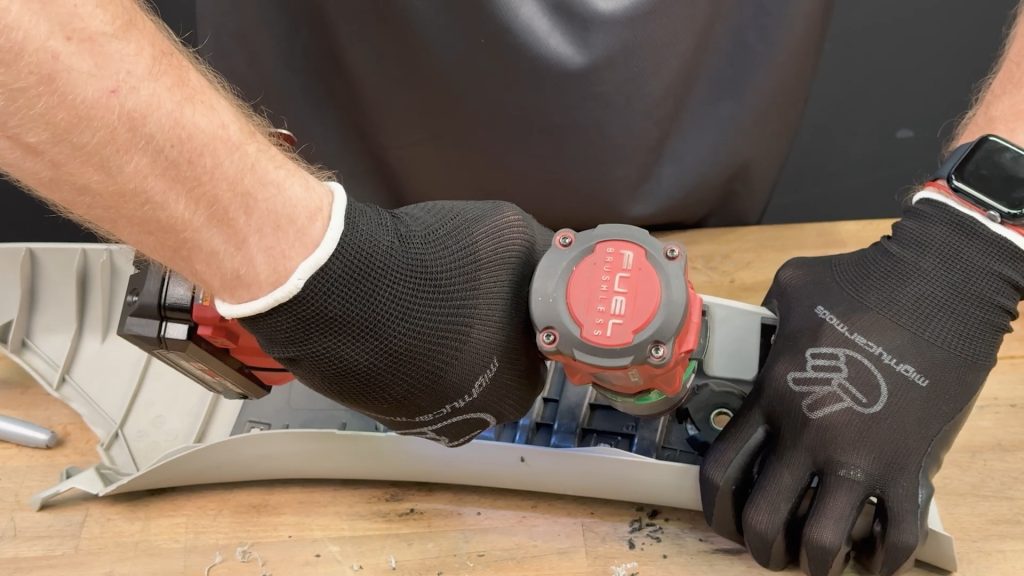 10. Start drilling slowly so the bit has a chance to bite. You don’t want it to walk from the starting point and damage the A-pillar.