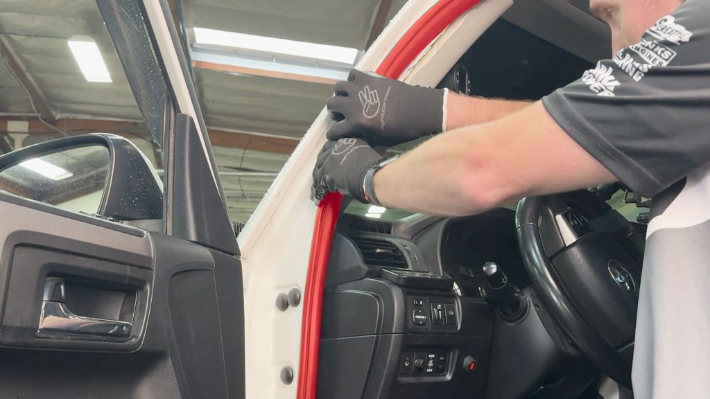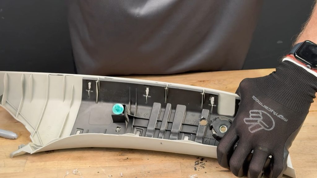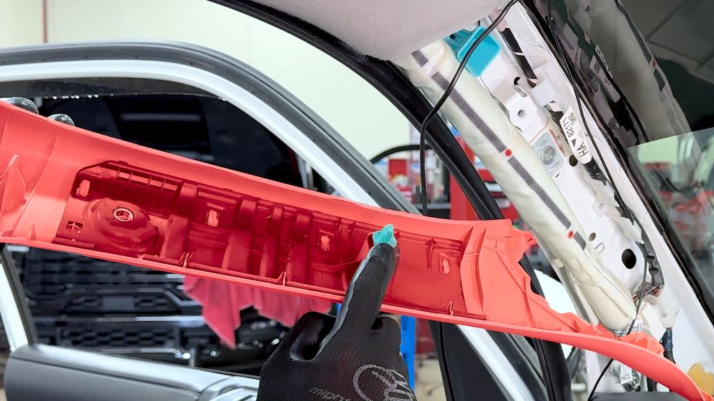 18. Carefully slide the A-pillar back into place, taking care not to snag the cable in the process.