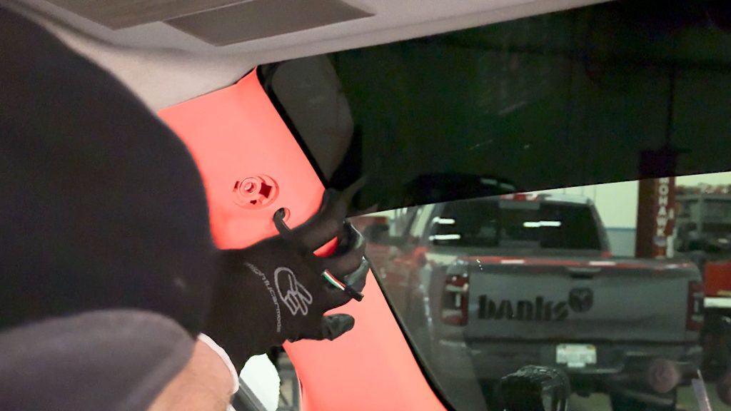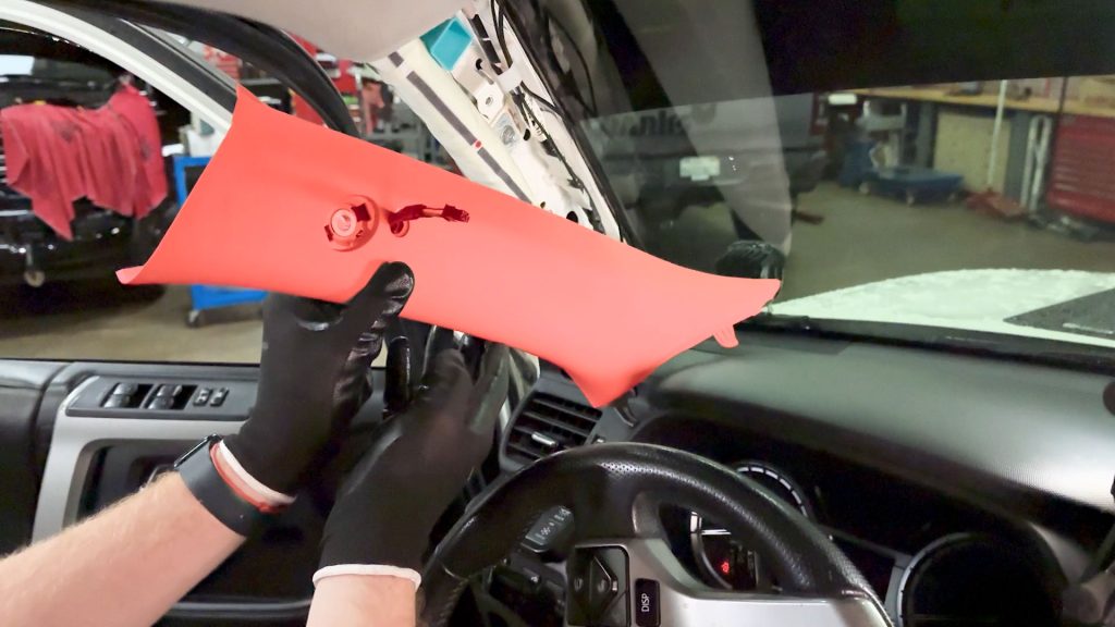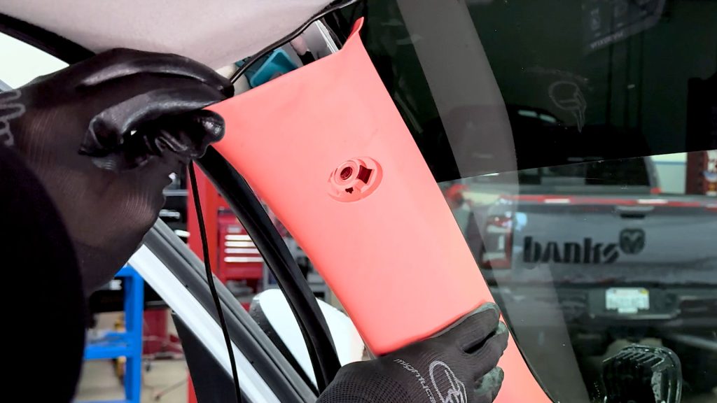 17. Run the 4-pin cable through the back side of the A-pillar.