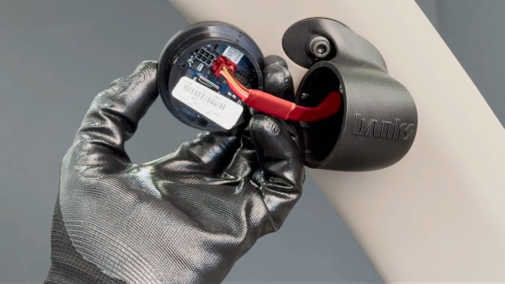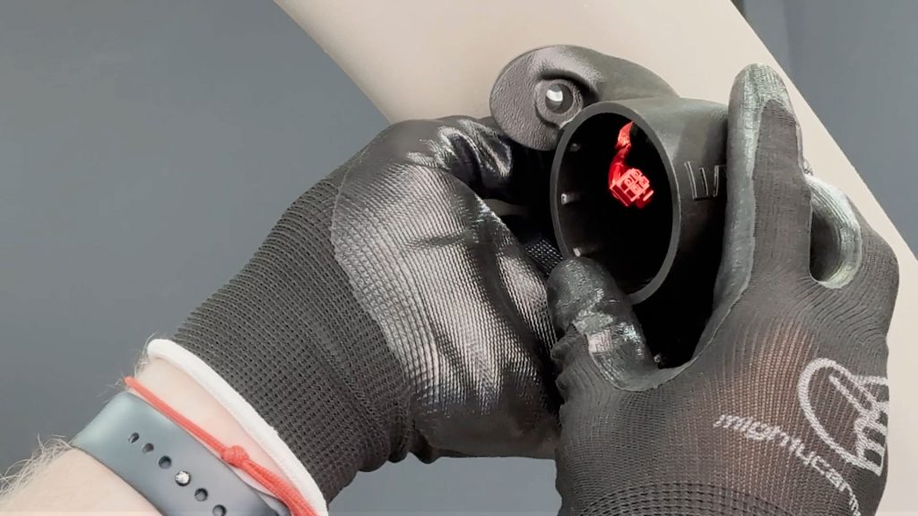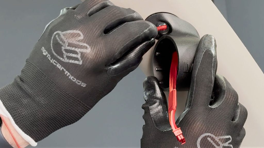 19. With your new Stealth Pod in hand, feed the 4-pin cable through the Stealth Pod as you line it up with the bolt hole.