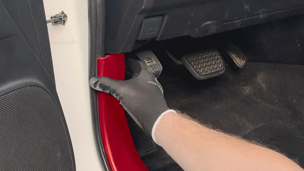 14. Pull back the lower kick panel on the driver’s side. It is held in by a plastic clip.