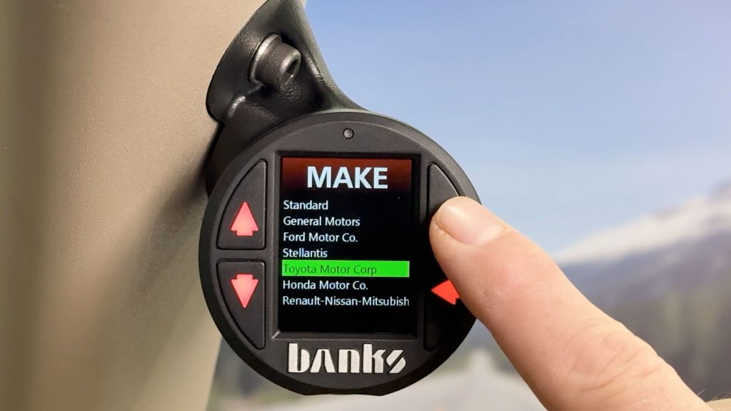 35. Press the right arrow again and select Toyota as your vehicle make. Now your iDash will reboot and unlock extra PIDs specific to Toyota’s ECM.