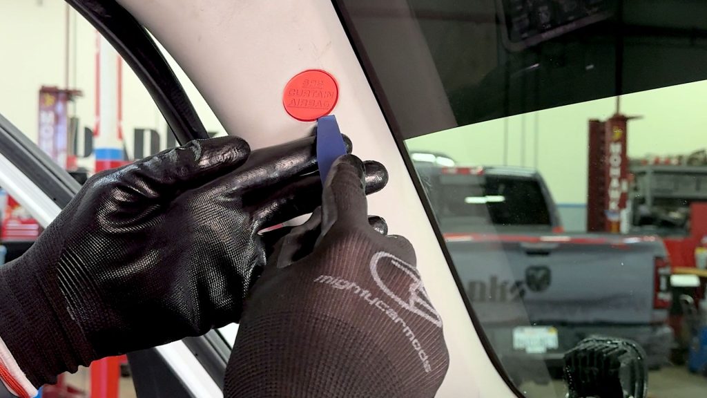 3. With a plastic pry tool, pop off the SRS bolt cover.