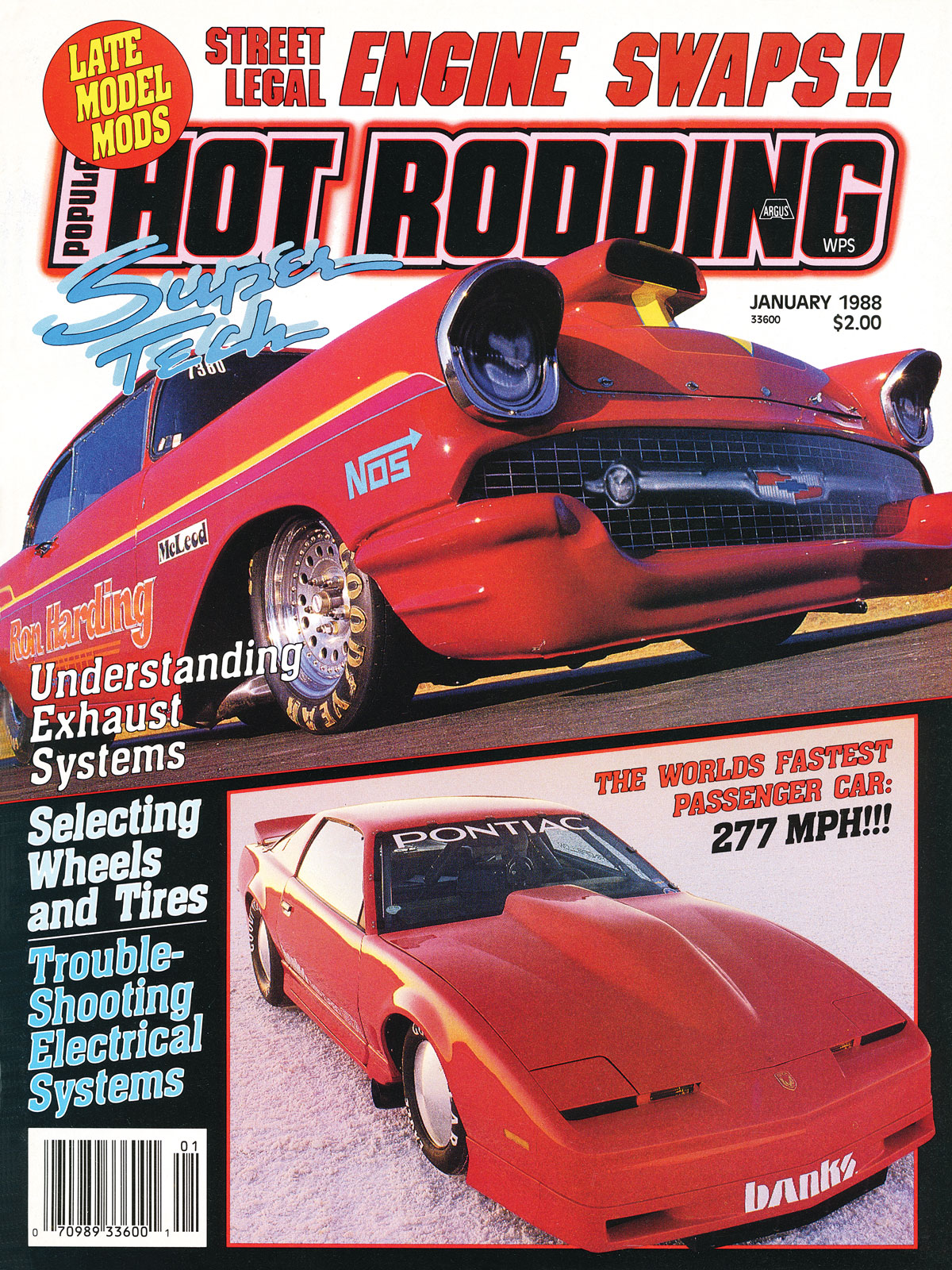 “The three-year buildup paid off during the 38th annual Bonneville Speed Trials when the Banks ‘Bird nabbed the class win, making it the World’s Fastest Passenger Car. And that was on gas with ‘only’ 22 pounds of boost; the twin hairdryers will generate a maximum of 38 pounds of boost!” —Hot Rod Yearbook